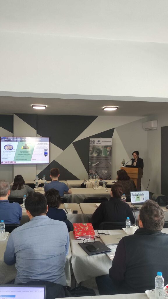 Following the welcome, Dr. Anastasia-Maria Moschovi introduced MONOLITHOS: the company’s history, its role in catalysis and recycling, and their ongoing R&I (research & innovation) activities. She framed the company’s mission as both ecological and industrial: developing scalable, sustainable recycling solutions that can integrate into Europe’s circular-economy ambitions.