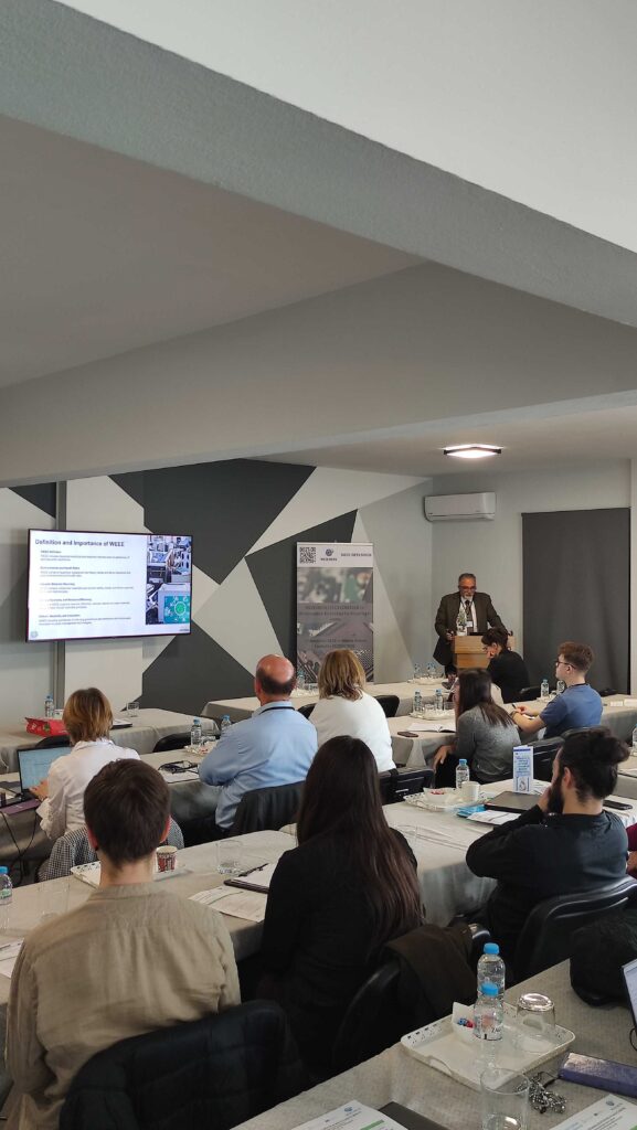 Representatives from Novamechanics (Dr. Dimitris Mintis & Dr. Antreas Afantitis) presented how machine-learning and AI-driven sorting algorithms can transform the early stages of recycling — automatically identifying, classifying, and sorting end-of-life components, especially in complex waste streams like printed-circuit boards. Such automation is crucial to dealing with large volumes of WEEE and ensuring components are treated properly before metallurgical processing.